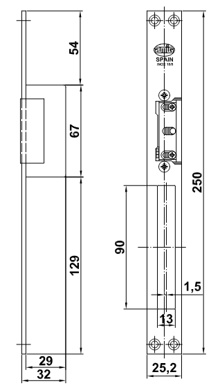 Elektromagnetinė sklendė (su atmintim), 12V maitinimas, su atjungimo funkcija, su plokštele, tiesioginio veikimo.