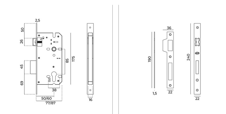 Universali spyna: skirta vidutinio intensyvumo lauko ir vidaus durims. Rakinama DIN standarto cilindru.